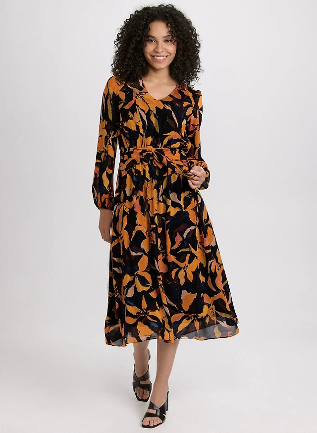 Long-Sleeve V-Neck Fit-and-Flare Mini Dress