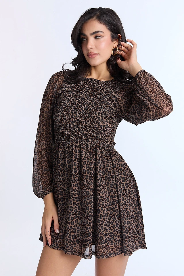 AERO Long Sleeve Smocked Mini Dress
