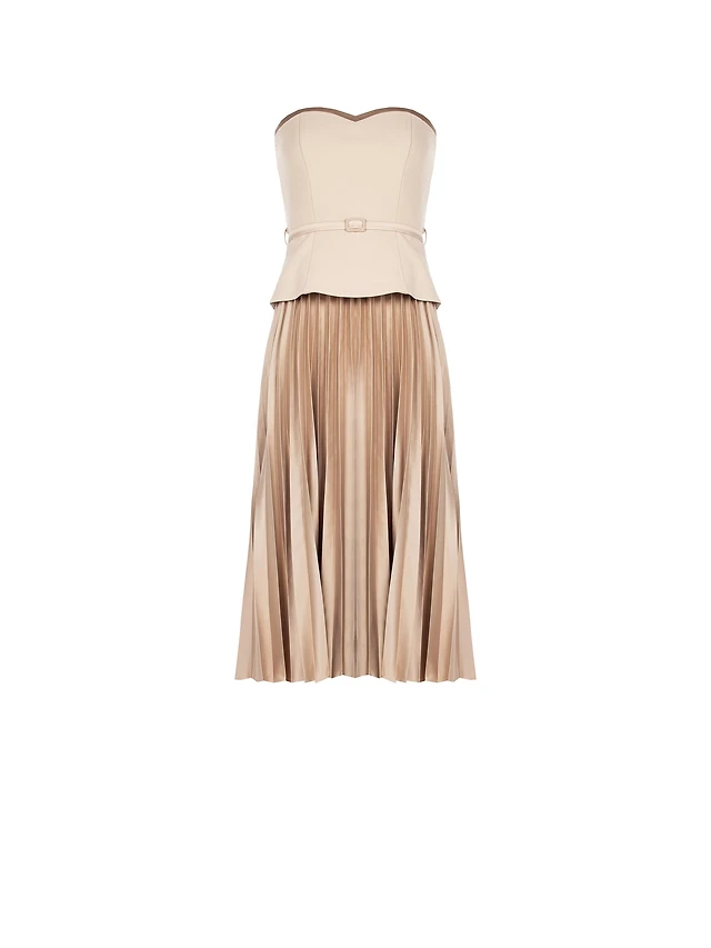 Long-Sleeve Fit-and-Flare Dress with Sheer Yoke