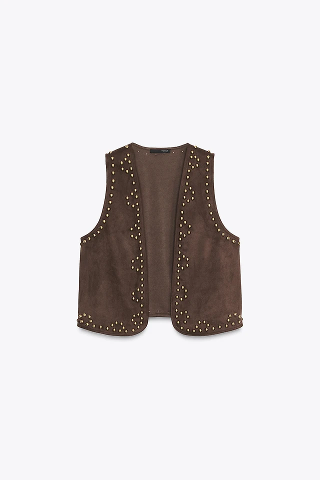 CONTRASTING EMBROIDERED FAUX FUR VEST
