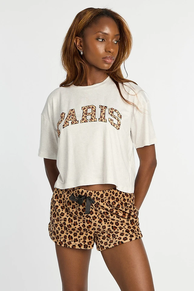 Graphic Pajama Tee & Plush Shorts 2-Piece Set