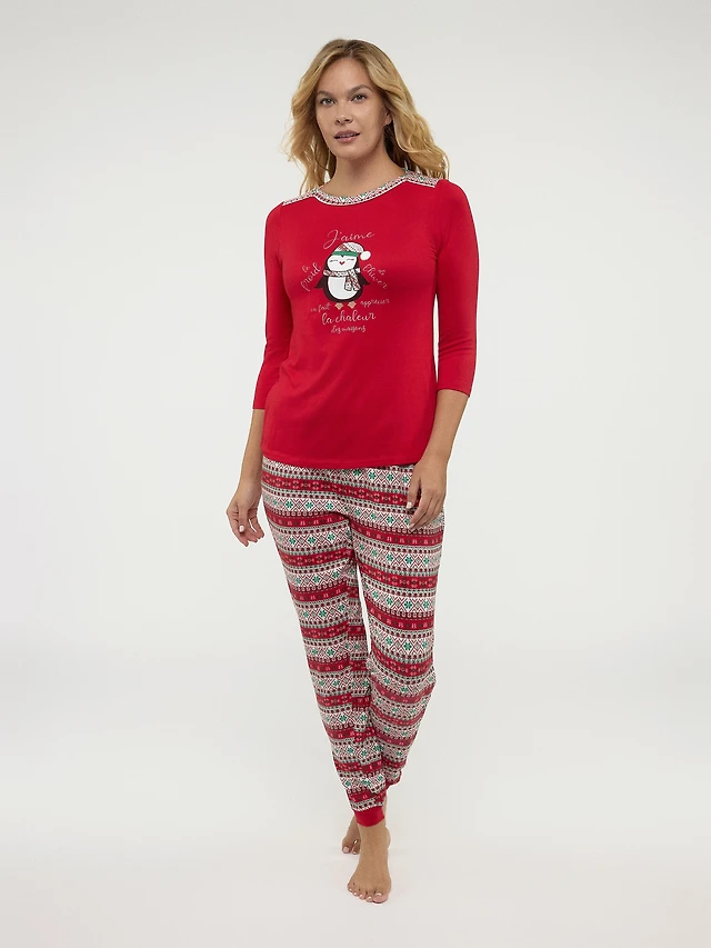 Ensemble-pyjama 2 pièces T-shirt boutonné et pantalon imprimés