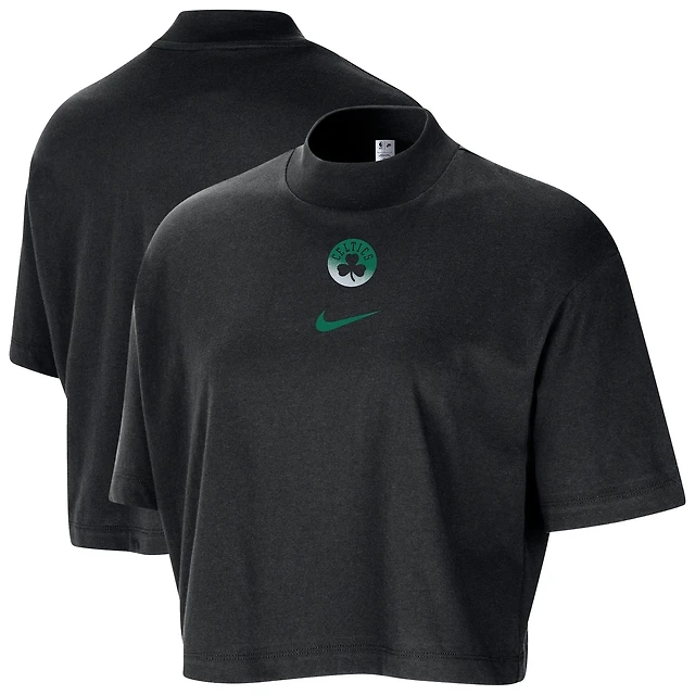 Women's Nike Black Boston Celtics Courtside Mock Neck Loose Fit Cropped T-Shirt