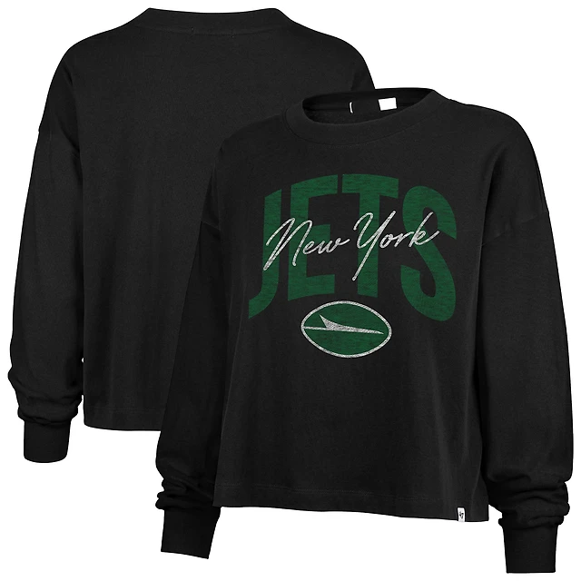 Women's '47 Black New York Jets Muse Sydney Long Sleeve Cropped T-Shirt