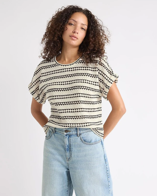 Short-Sleeve Crew-Neck Mix-Media Blouse