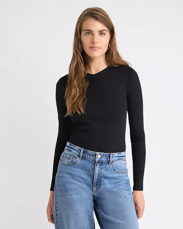 Extended-Sleeve Crew-Neck Relaxed-Fit Striped Top
