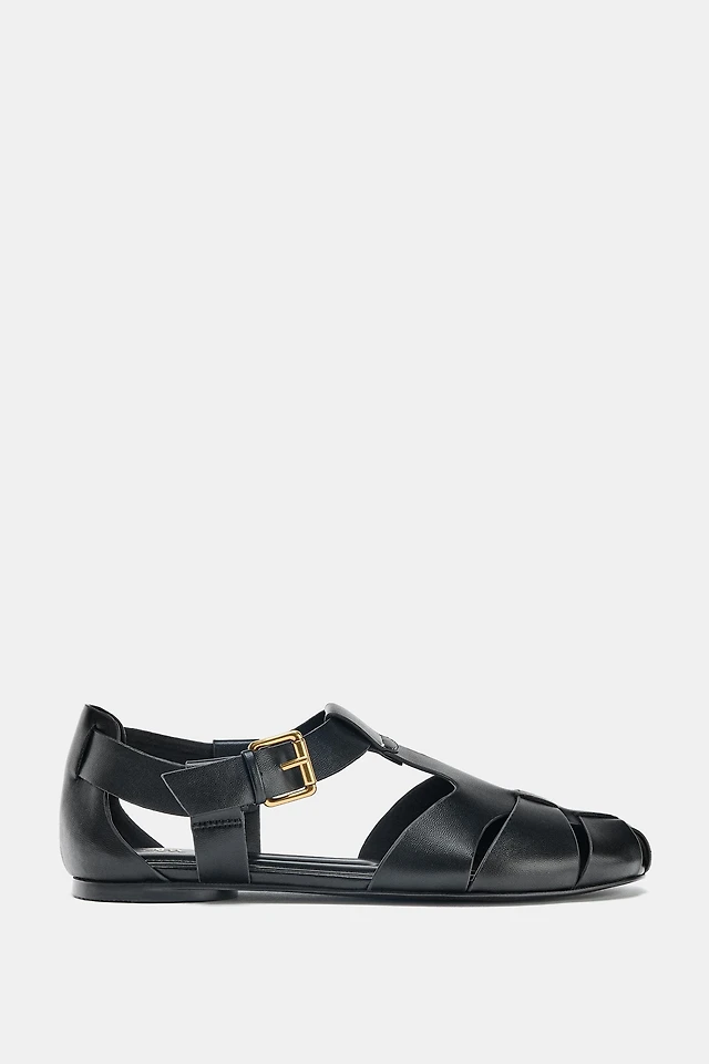 SPLIT LEATHER STRAPPY FLAT SANDALS