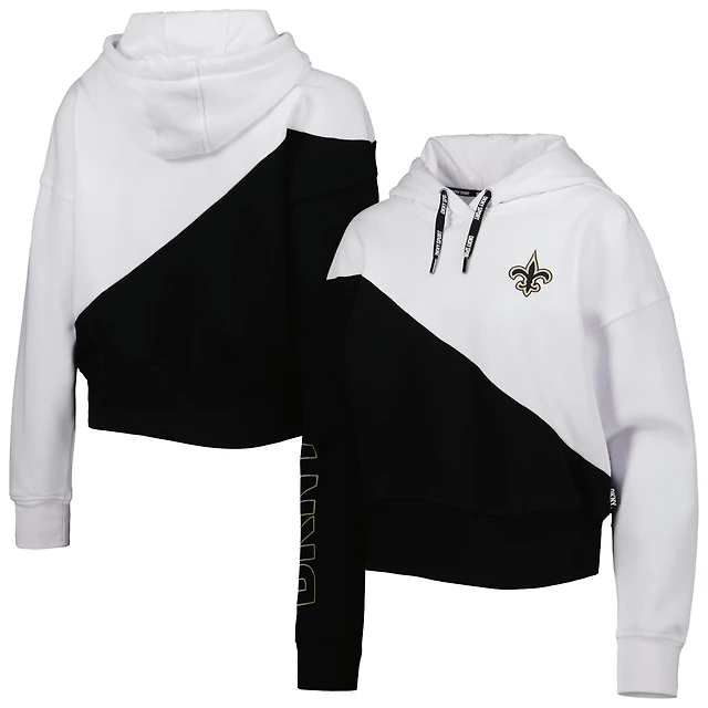 Women's DKNY Sport White/Black New Orleans Saints Bobbi Color Blocked Pullover Hoodie