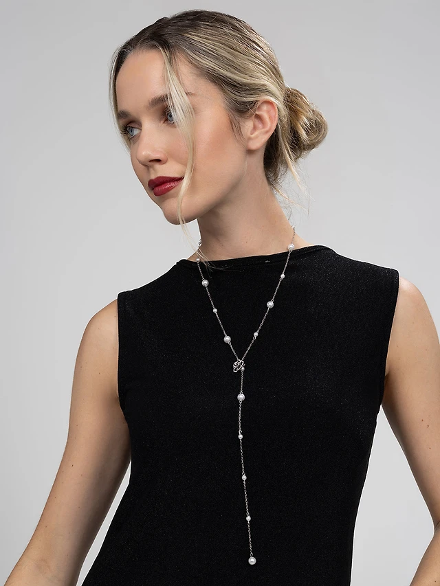 DAZZLING SWAN Y NECKLACE, MULTI-COLORED, ROSE GOLD PLATING. Color: pink | Doucet Latendresse