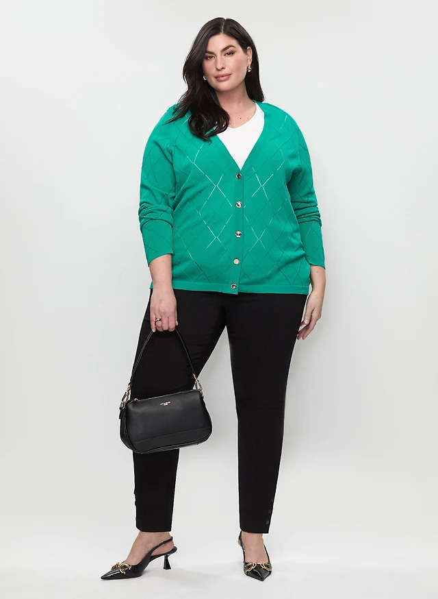 Pointelle Knit Buttoned Cardigan & Slim Pull-On Ankle Pants