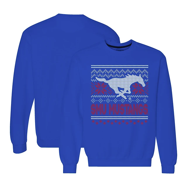 Men's Royal SMU Mustangs Holiday Fleece Crewneck Sweatshirt