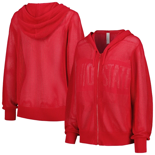 Women's Lusso Scarlet Ohio State Buckeyes Summer Tonal Mesh Full-Zip Hoodie Sweater