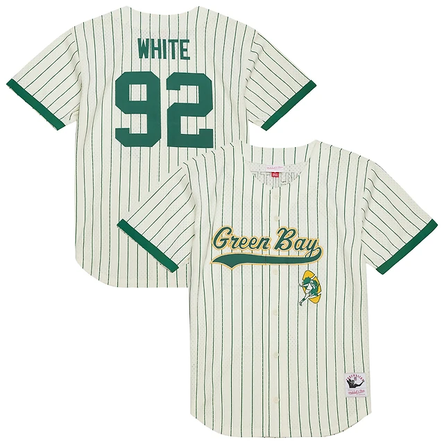 Men's Mitchell & Ness Reggie White Cream Green Bay Packers Name Number Mesh Button-Up Baseball Jersey