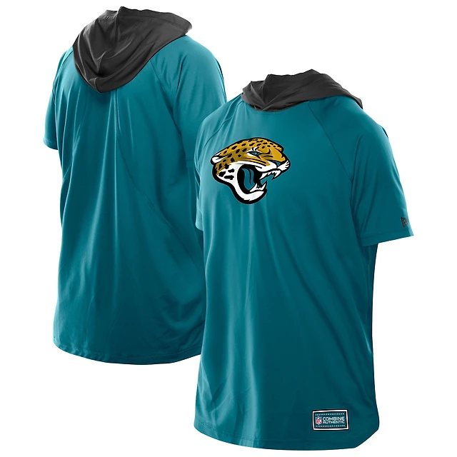 Men's New Era Aqua Miami Dolphins Combine Authentic Hooded Raglan Short-Sleeve T-Shirt