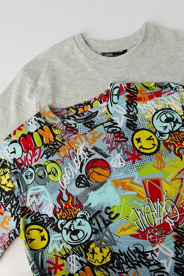 Boys Solid & Graffiti Print T-Shirt (2 Pack)