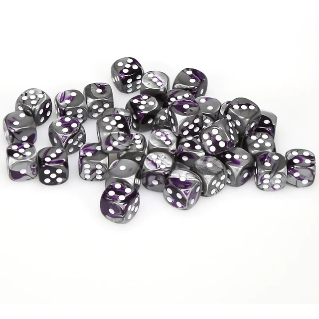 36 dés 6 12mm Gemini violet/acier avec points blancs