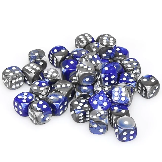 36 dés 6 12mm Gemini bleu/acier avec points blancs