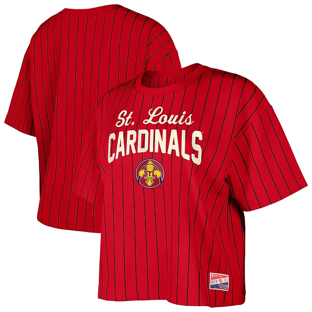 Women's New Era Red Atlanta Braves City Connect Multiplier Pinstripe Cropped T-Shirt