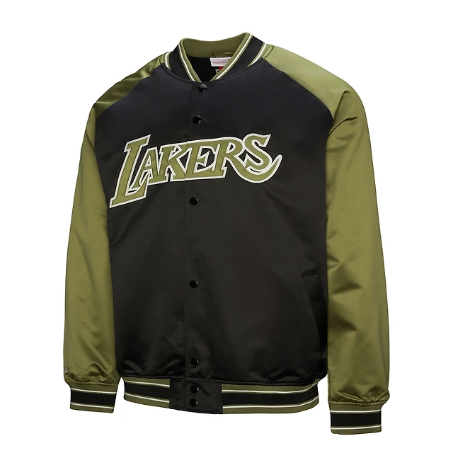 Men's Mitchell & Ness Olive/Black New York Knicks Clutch Satin Raglan Full-Snap Jacket