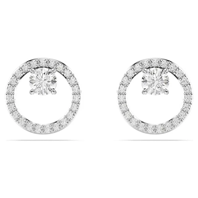 Rhodium Plated Earrings with Hanging Round Crystal. Color: white | Doucet Latendresse