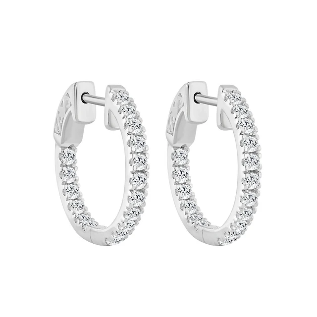 Sterling Silver Huggies Earrings Set with Lab-Grown Diamonds
