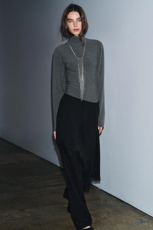 SEMI-SHEER TOPSTITCHED MIDI SKIRT
