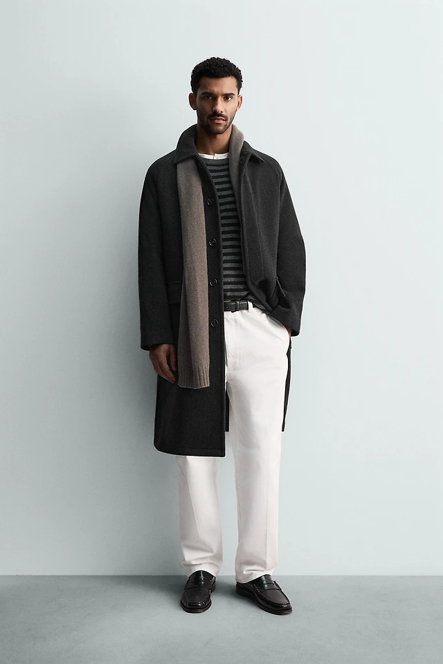 WOOL BLEND COAT WITH CONTRAST LAPEL