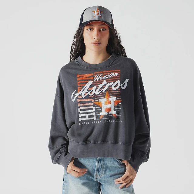 Women's '47 Cream Houston Texans Double Header Curve Raglan Long Sleeve Crop Top
