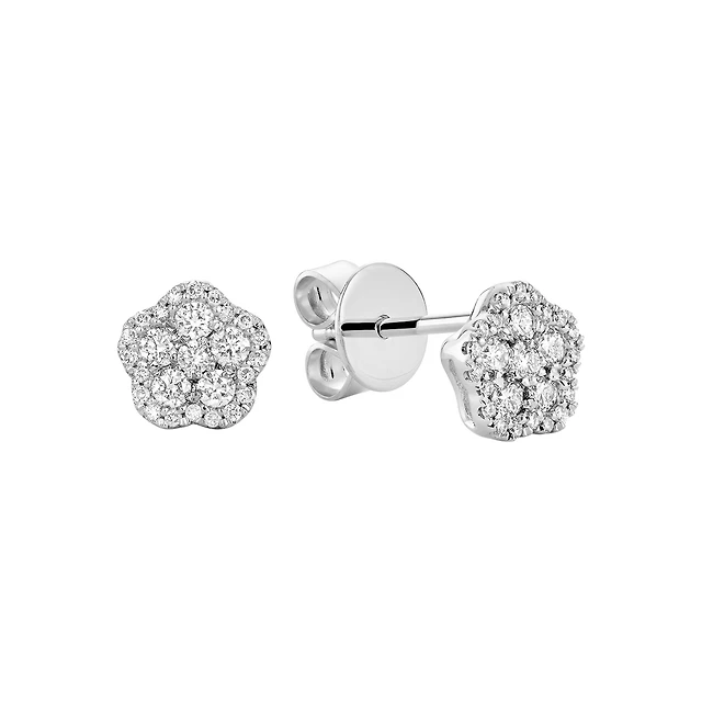 14K White Gold Stud Earrings with Princess-Cut Lab-Grown Diamond. Color: white | Doucet Latendresse