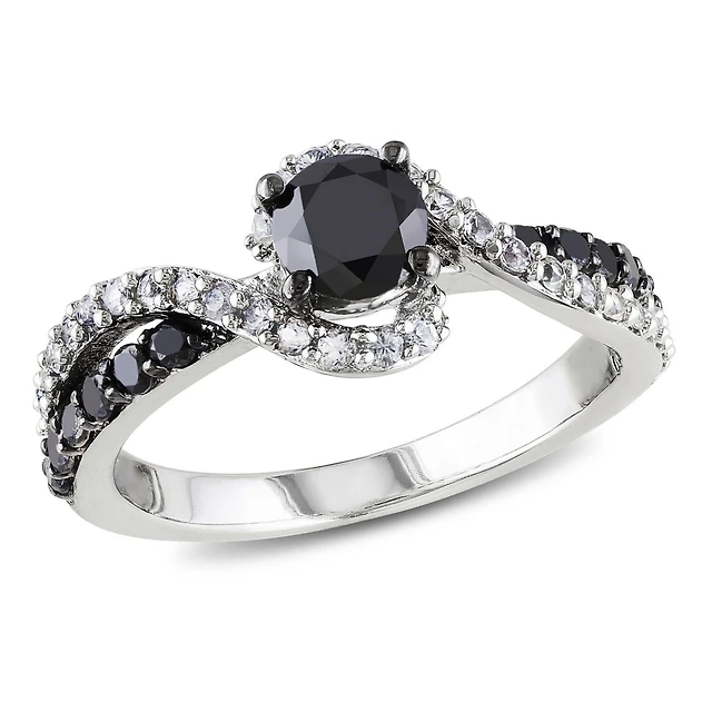 Asteria 0.75 Carat T.W. Black Diamond and 0.33 Carat T.G.W. Created White Sapphire Sterling Silver Bypass Ring