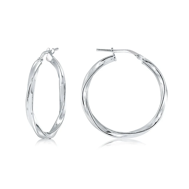 Twisted hoops earrings for women - Sterling silver. Color: white | Doucet Latendresse