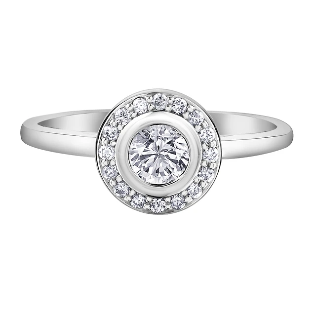 Bague Cocktail Coupe Ronde en Or Blanc 10K Sertie de Diamants - 0.6ct. Color: white | Doucet Latendresse