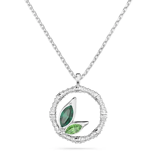 Swarovski Dextera Pendant Necklace with Pavé Geometric Charms – Rhodium Plated. Color: white | Doucet Latendresse
