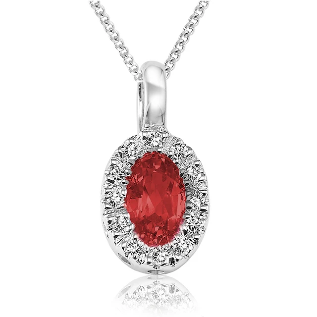Pendant for women - 10K white gold with ruby & diamonds , with necklace 18''. Color: white | Doucet Latendresse