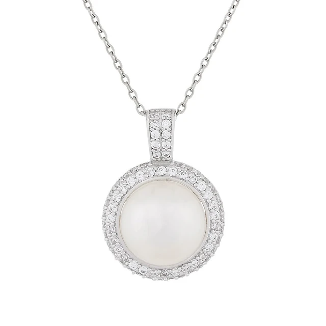 pearls pendant with chain (17 inches) - Sterling silver 0.925 with cubic zirconia. Color: white | Doucet Latendresse