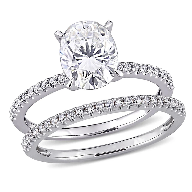 Miabella 2 Carat T.G.W. Moissanite and 1/3 Carat T.W. Diamond 14K White Gold Halo Bridal Set