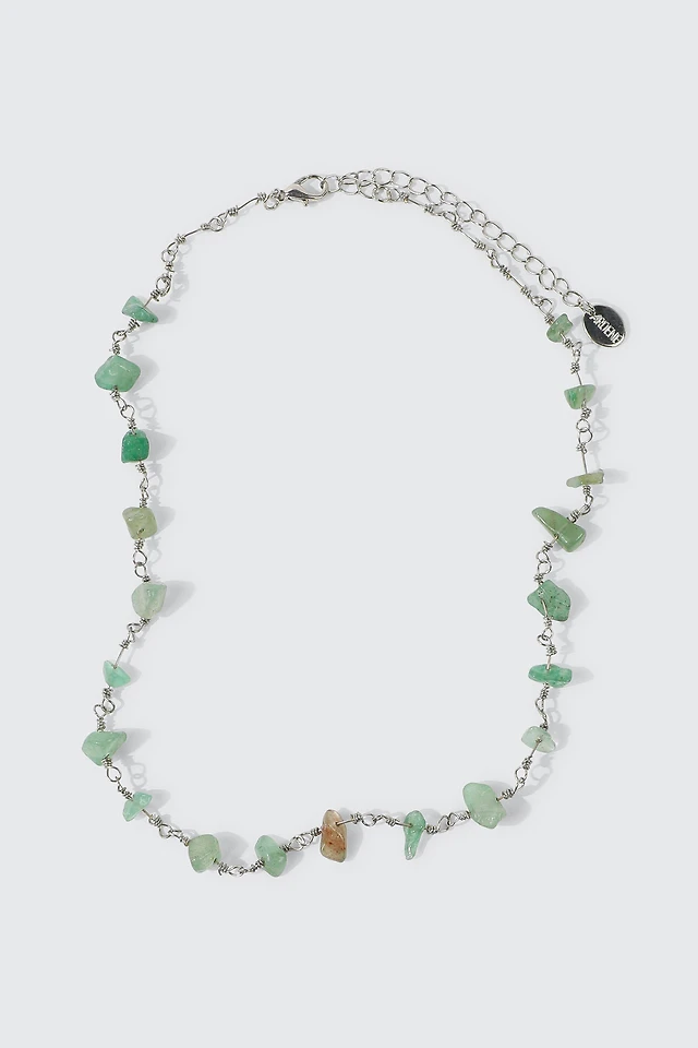 Ardene 2-Row Bead & Cord Necklace with Turquoise Stone in Medium Green