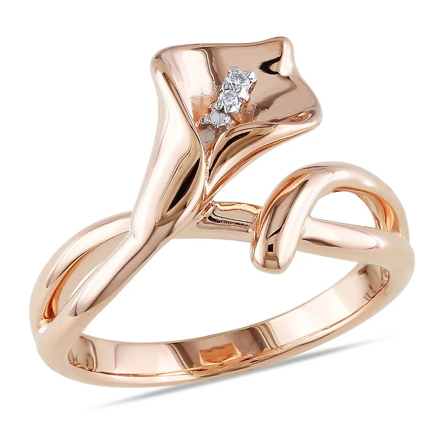 Miabella Diamond-Accent Rose Rhodium Plated Sterling Silver Cross-Over Ring