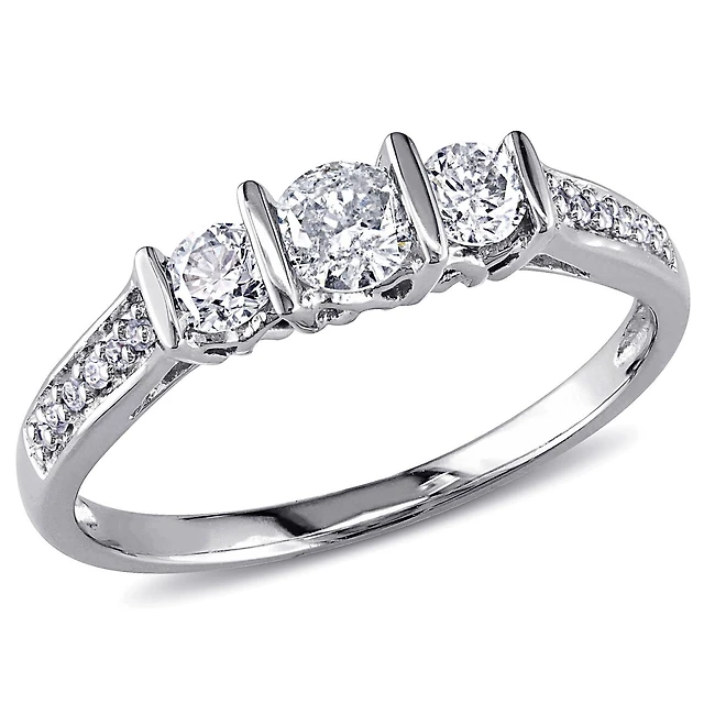 Miabella 5/8 Carat T.W. Diamond 14k White Gold Three-Stone Engagement Ring