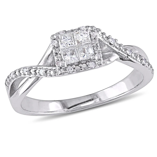 10K square engagement ring with diamonds. Color: white | Doucet Latendresse