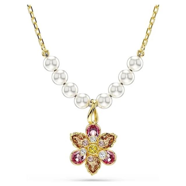 Gold Plated Flower Pendent with Crystal Pearl and Chain - 17