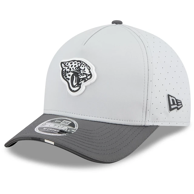 Men's New Era Gray/Graphite Jacksonville Jaguars 2025 NFL Training Camp A-Frame 9FORTY Adjustable Hat