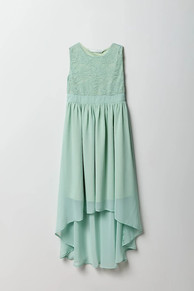 Girls Lace & Chiffon High-Low Dress