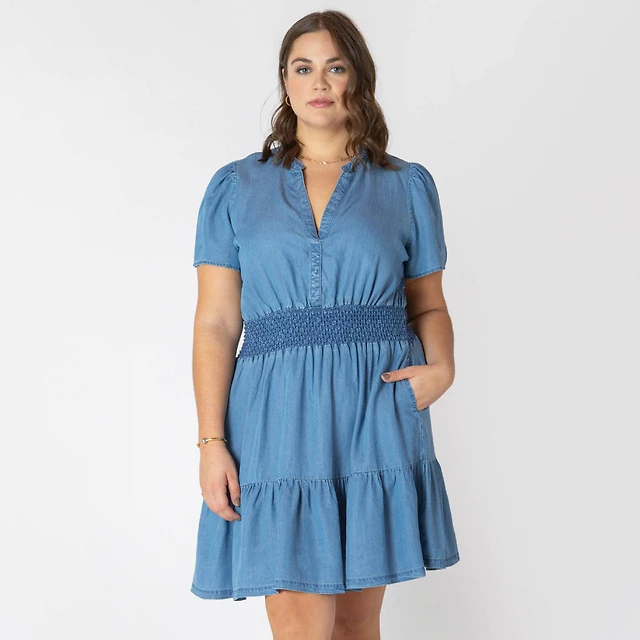 Devoted Women’s Plus size loose fit short sleeve denim mini dress