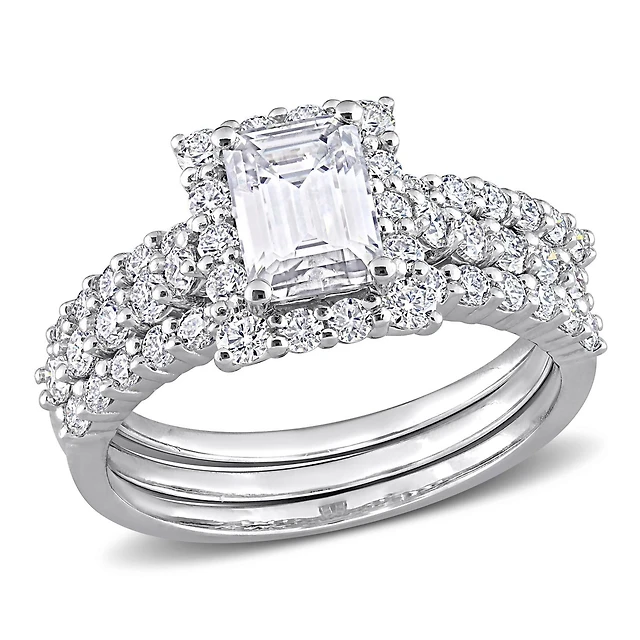 Miabella 2 Carat T.G.W. Moissanite and 1/4 Carat T.W. Diamond 14K White Gold Oval Bridal Set