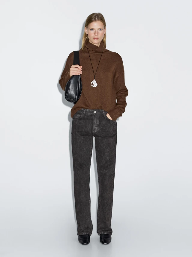 Jean ajusté à taille haute lavé moyen