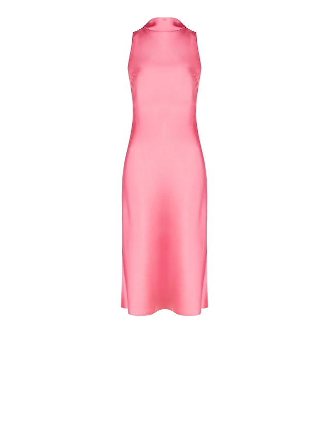 Sleeveless High Neck Satin Midi Dress