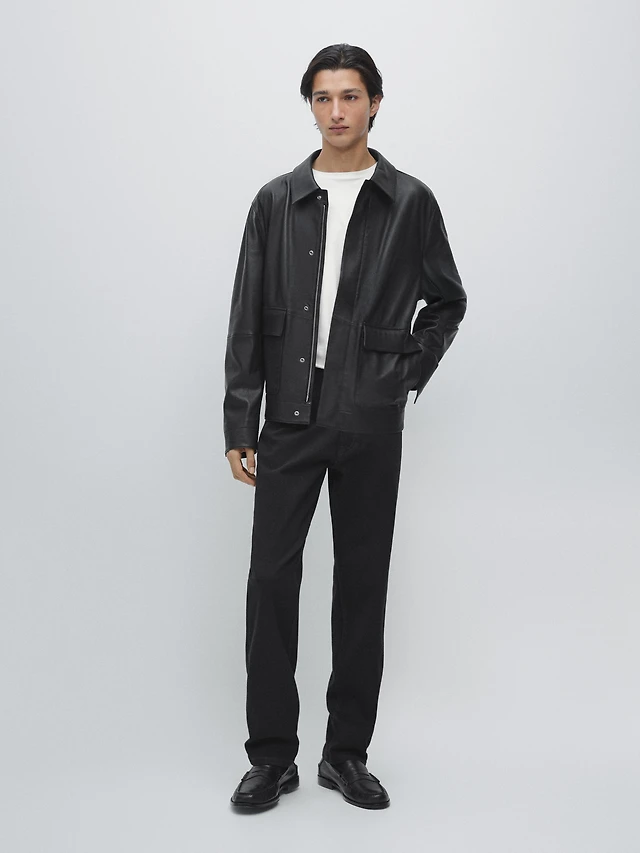 LEATHER JACKET WITH COMBINED COLLAR