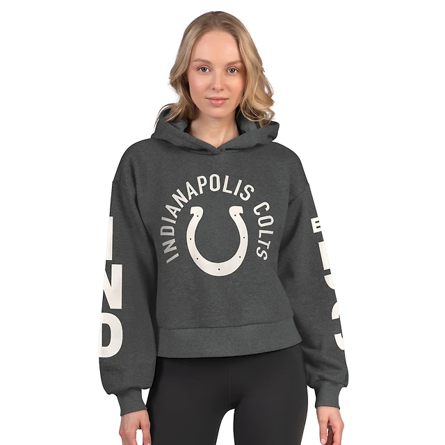 Women's Starter Heather Charcoal Kansas City Chiefs Star Player Cropped Fleece Pullover Hoodie