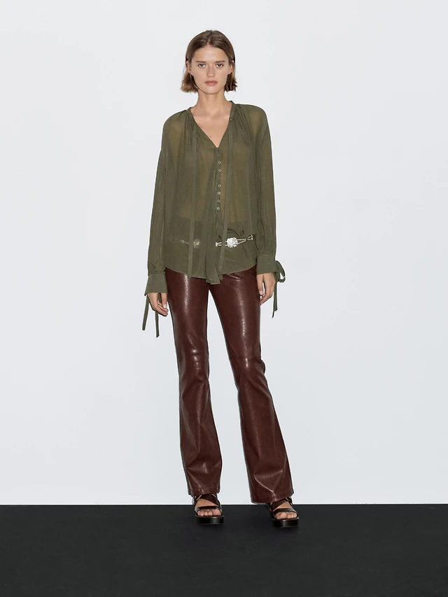 Solid tie-front blouse - ARABELLEY2U (E-B1)